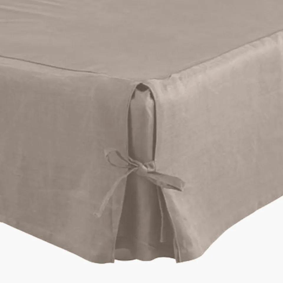 Un plateau en coton renforcé, 3 volants tombant sur le sommier, et de jolies nouettes : craquez pour ce cache-sommier en lin.