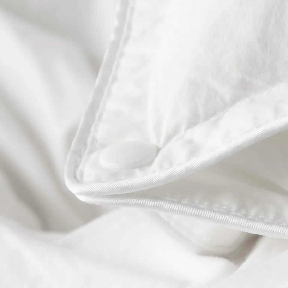 Découvrez Opera, notre nouvelle couette innovante 3-en-1. Ses boutons pressions à clipser lui permettent de s’adapter à toutes les saisons, offrant un confort exceptionnel toute l’année. Légère en été (90g/m²), douillette à la mi-saison (190g/m²), chaude en hiver (280g/m²), elle répond à tous vos besoins. Dotée d’une enveloppe en percale de coton haut de gamme, elle est garnie de duvet et plumettes de canard pour une douceur et une isolation incomparables.