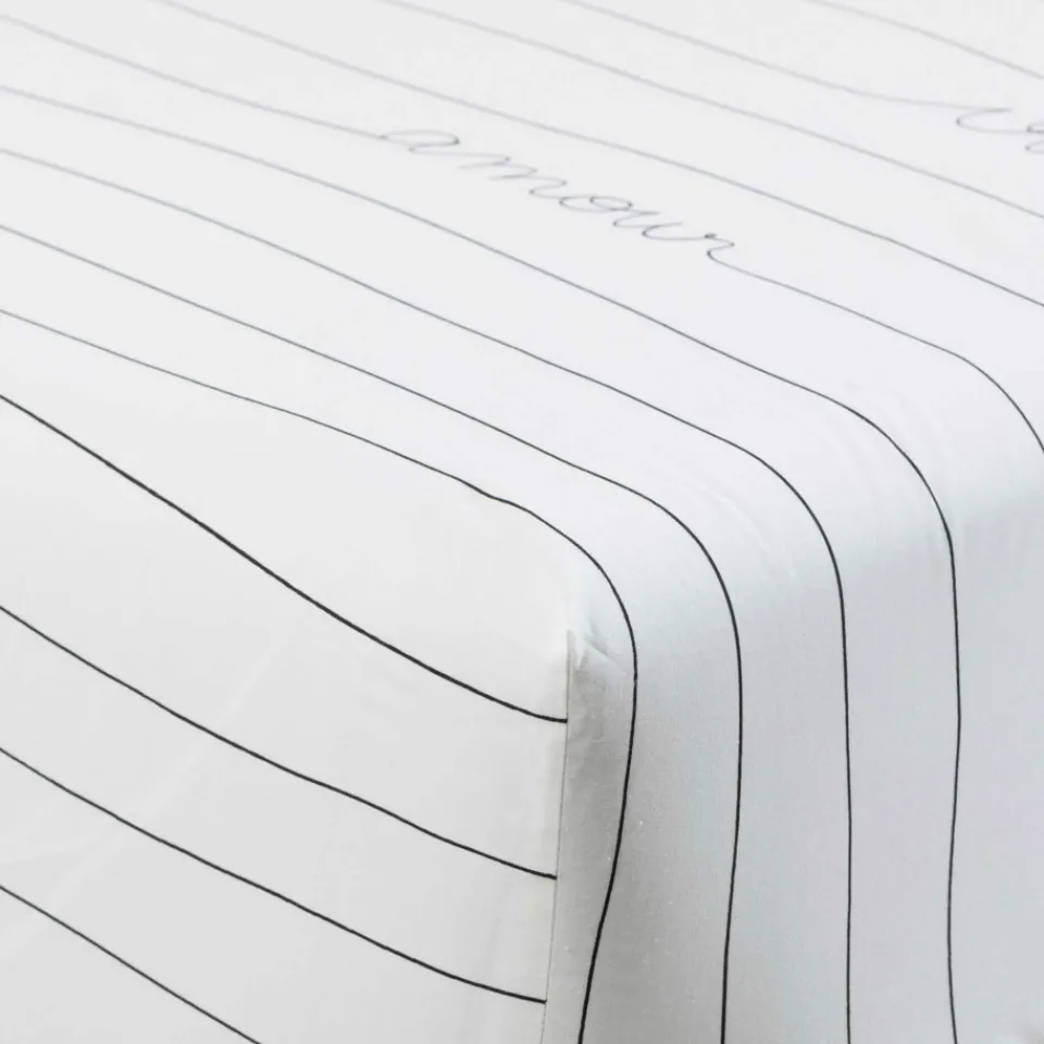 Ce drap housse invite à créer des mix and matchs avec sa rayure graphique et minimaliste.