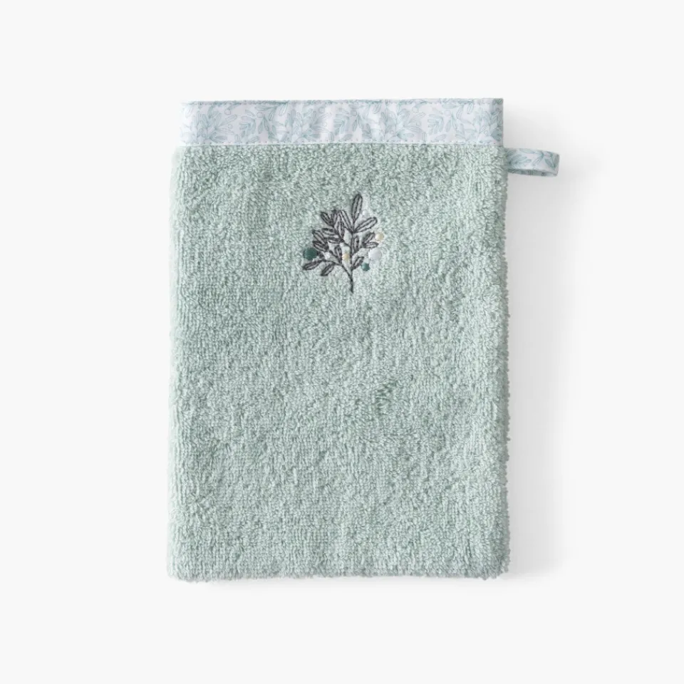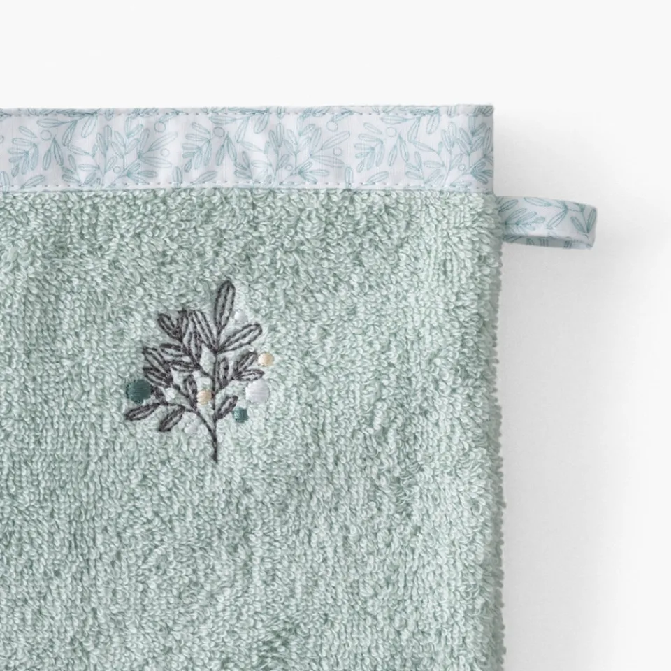 Ressentez la douceur entre vos mains avec le gant de toilette Jardine, certifié GOTS. Conçu en coton et orné de broderies animales, il est disponible en blanc et amande.