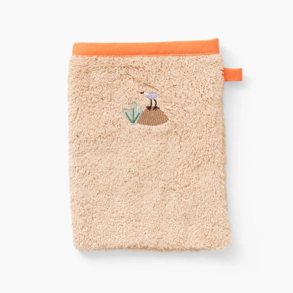 Le gant de toilette Safari est le choix parfait pour ceux qui cherchent à ajouter une touche exotique à la salle de bain des enfants. Cette collection arbore des jolis motifs brodés sur fond de couleur beige et un liteau jacquard qui rappelle la savane. Fabriqué à partir de coton biologique, sain et confortable, ce linge de bain promet d’amuser les enfants au quotidien.