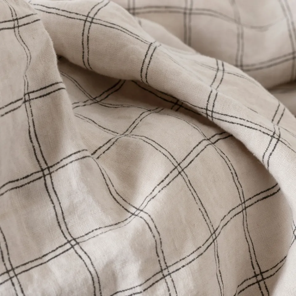 Succombez à l’esprit graphique de notre collection Songe, son coloris charbon et ses motifs carreaux. Le toucher unique du lin associé à un imprimé tendance pour une chambre dans l’air du temps.