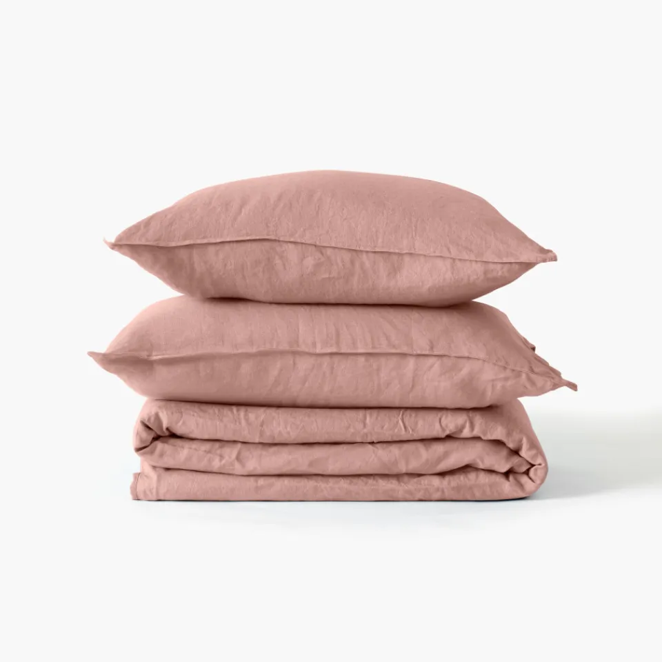 Une housse de couette unie en lin et coton lavé pour un effet respirant et thermorégulateur.
