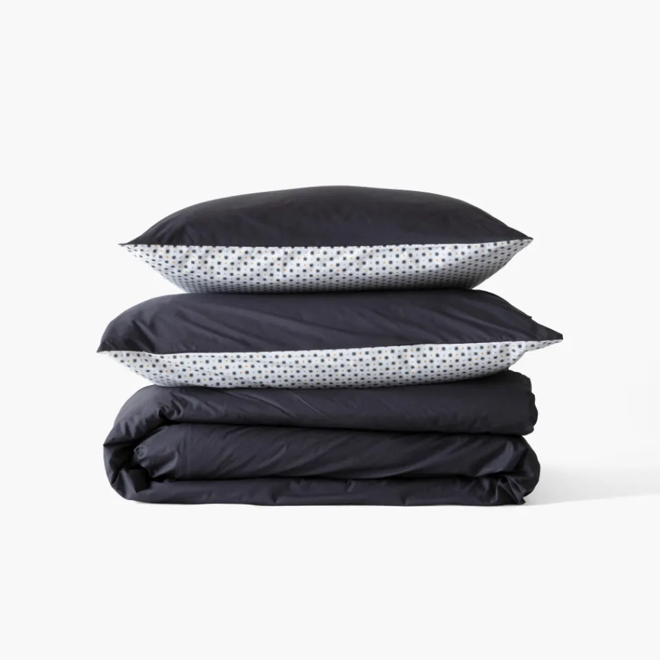 Succombez à l’esprit graphique de notre collection Neo et son coloris anthracite géométrique. Le confort de la percale de coton associé à de petits imprimés pour une chambre tendance.
