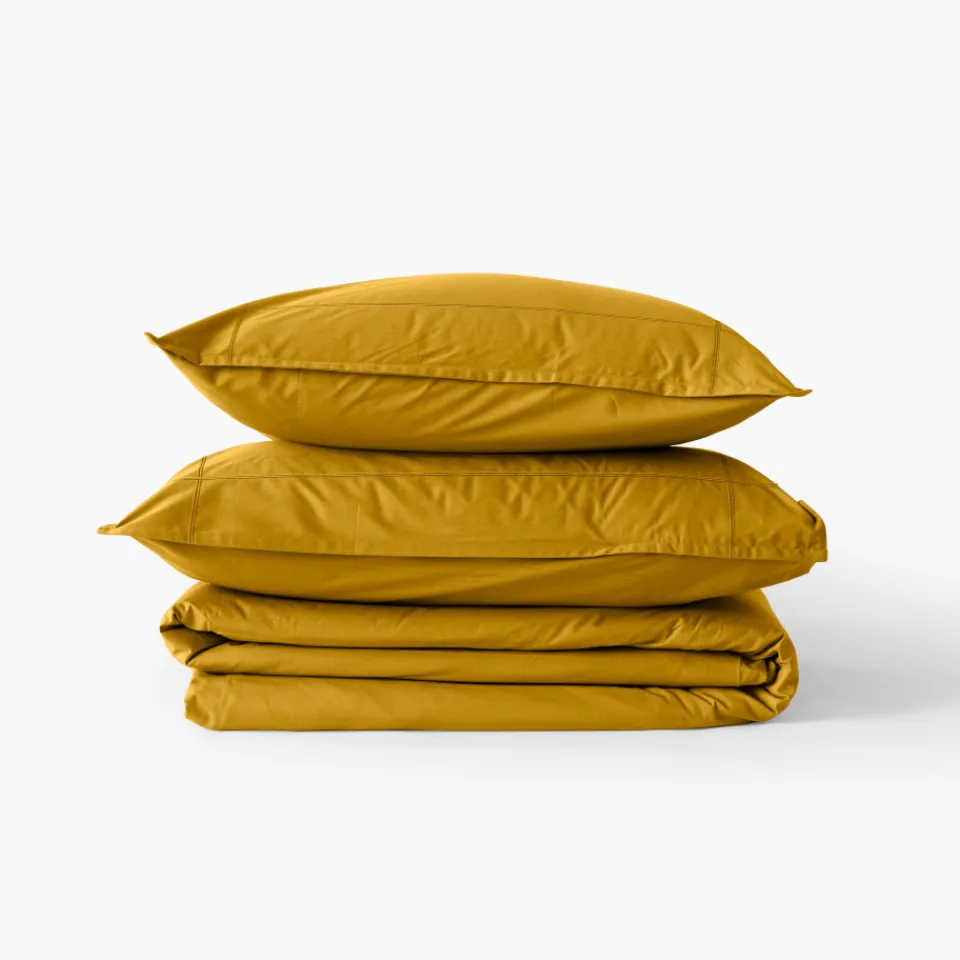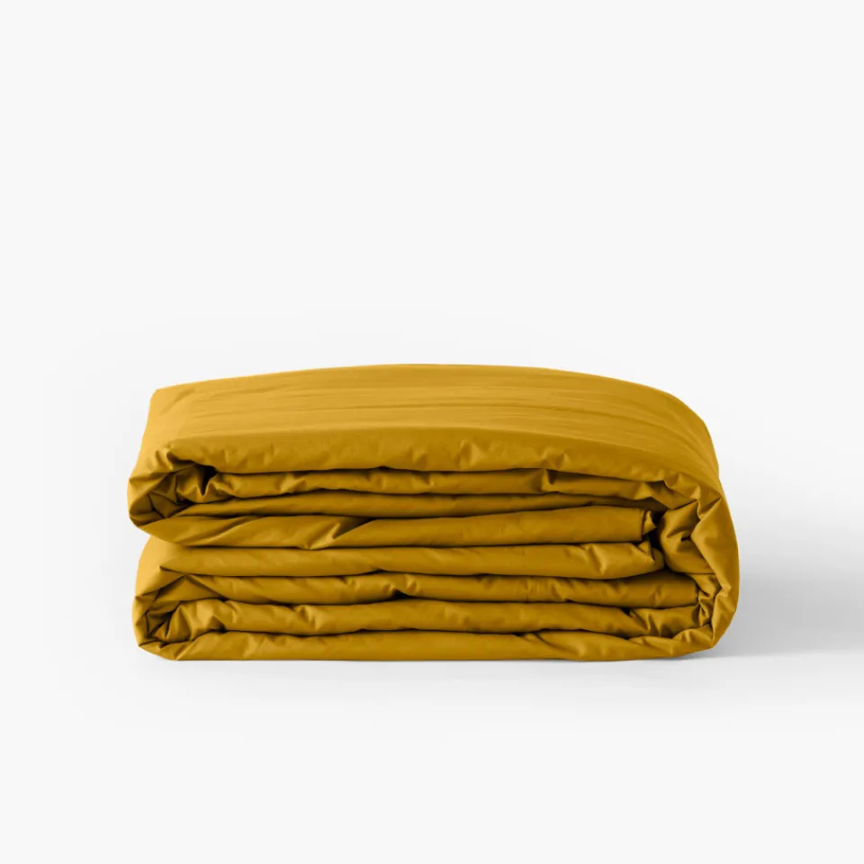 Une housse de couette unie en percale de coton avec un bel aspect mat.