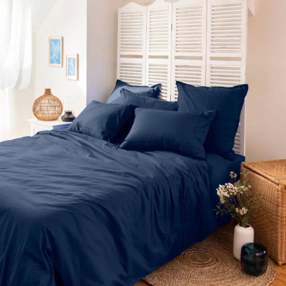 Une housse de couette unie en percale de coton avec un bel aspect mat.