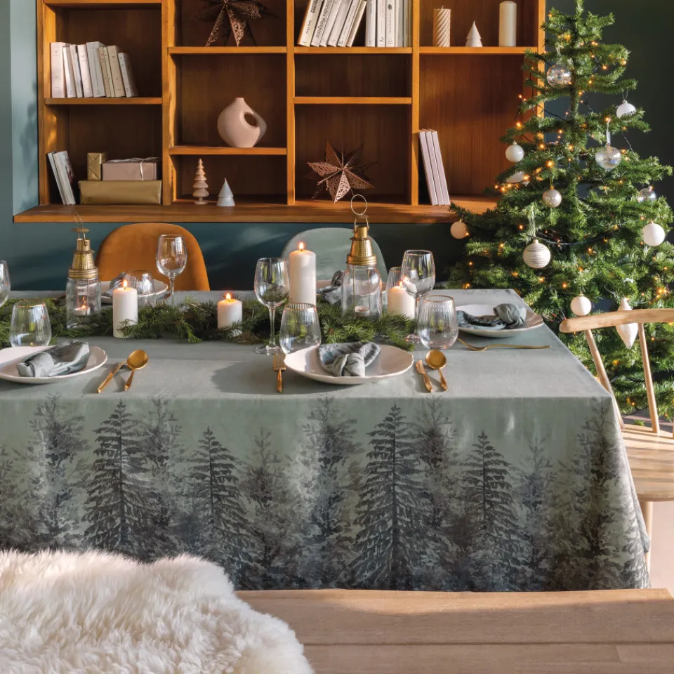 Plongée dans l’esprit de Noël, la nappe Sous-Bois arbore un dégradé de sapin. Les nuances de vert évoquent la forêt enchantée, créant une atmosphère chaleureuse et festive pour les repas en famille.