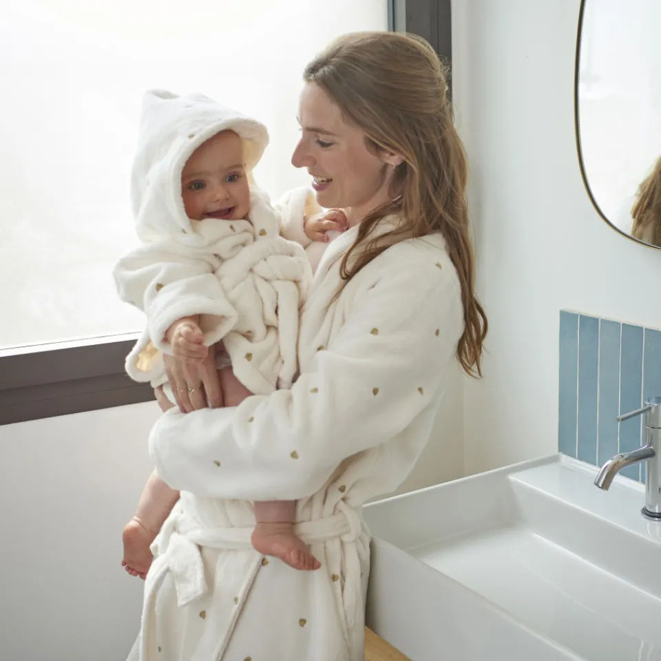 Rien de plus réconfortant que le peignoir Amore en coton, à la douceur exceptionnelle. Idéal pour un duo mère et fille, il est disponible en taille S à XL pour plus de confort. Venez partager des moments en famille.