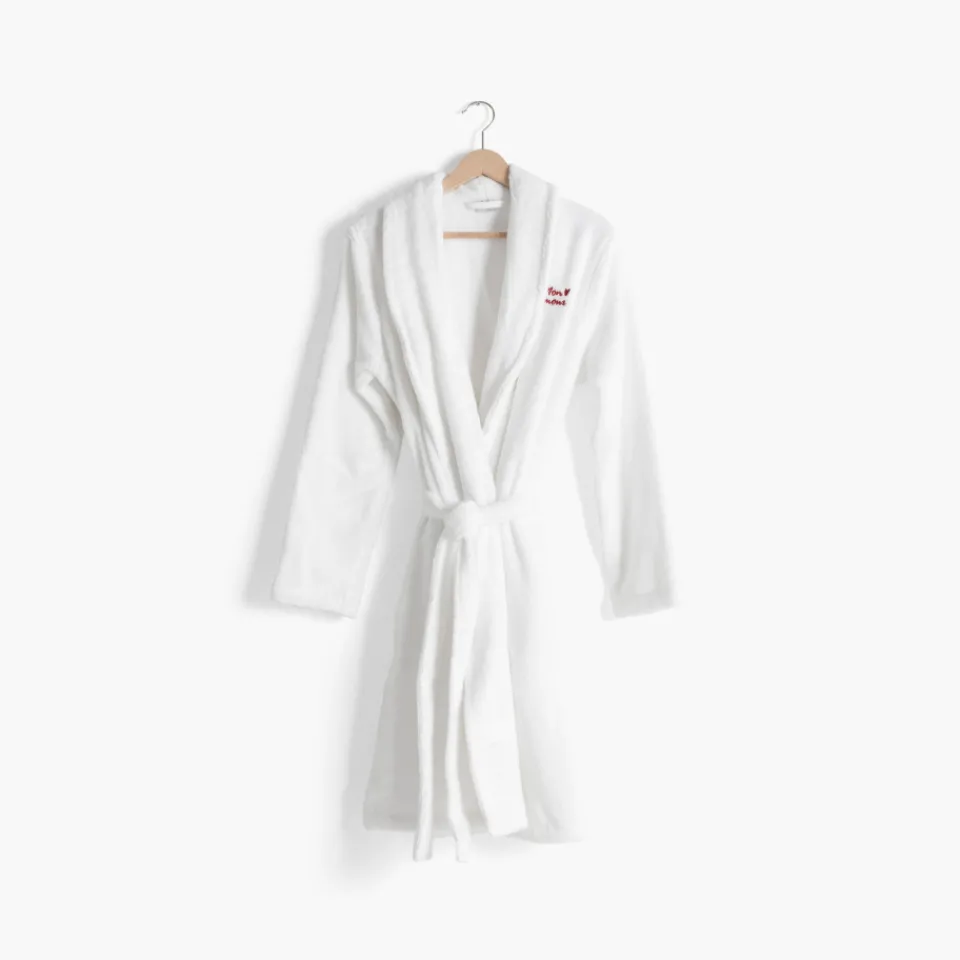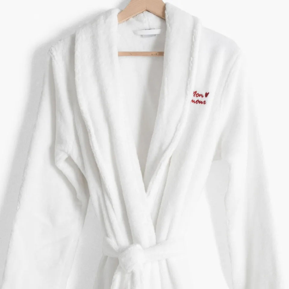 Ce peignoir de bain avec la broderie « Mon Amour » est le cadeau parfait pour montrer à votre moitié à quel point elle compte pour vous. Conçu en coton moelleux, il allie confort et élégance.