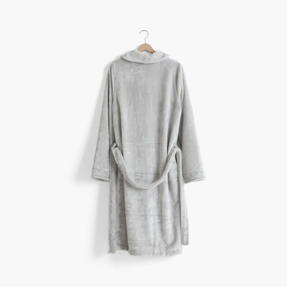 Douce et accueillante, la robe de chambre pour femme Equinoxe revêt un coloris tourterelle et un col châle enveloppant. Laissez-vous séduire par ses motifs de feuilles délicatement brodés.
