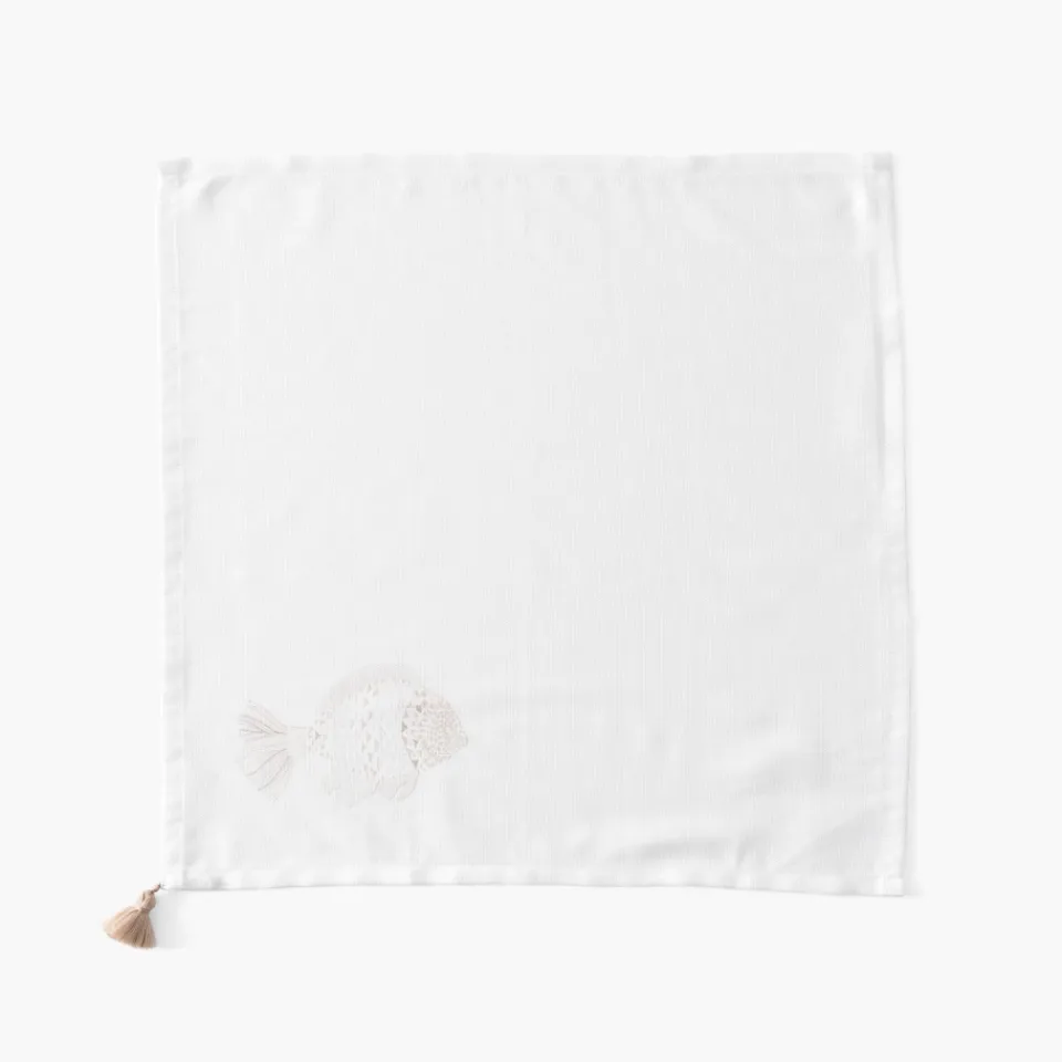 Sublimez votre table estivale avec la serviette de table Mykonos au motif poisson. Les pompons créent un charme unique, tandis que les touches dorées ajoutent une élégance bohème. Un essentiel pour des repas estivaux inoubliables.