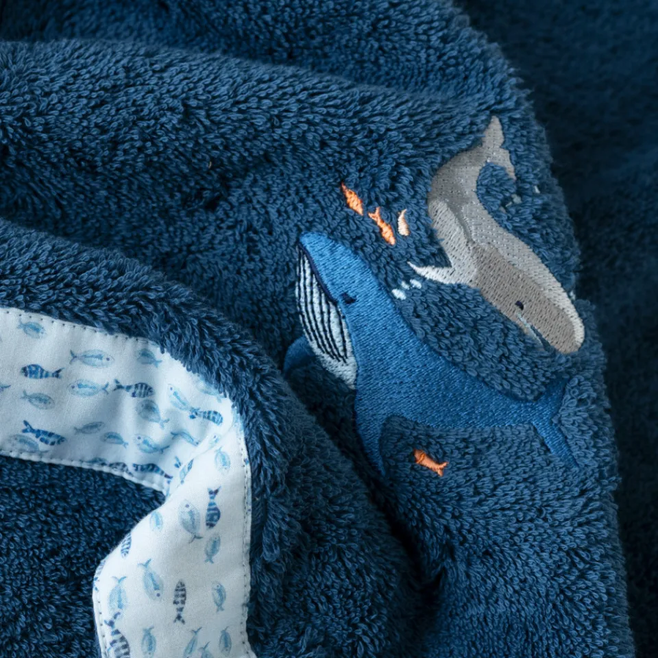 Nos stylistes ont imaginé avec la plus grande tendresse la serviette de toilette Océanos. Un modèle qui présente de belles broderies généreuses et une finition imprimée aux motifs poissons.