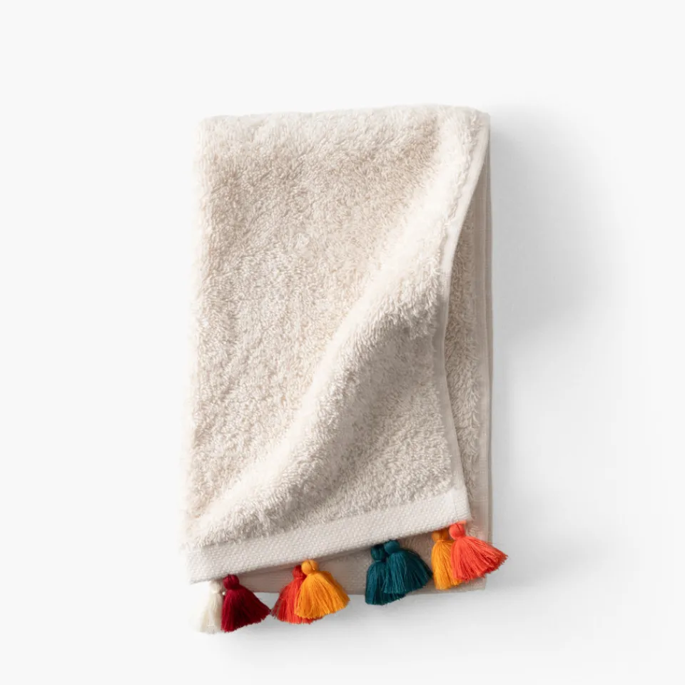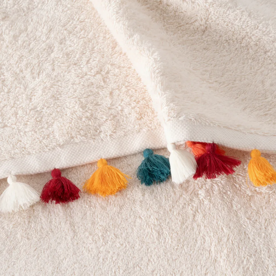 Optez pour une parure de bain douce aux pompons multicolores avec Eclats.