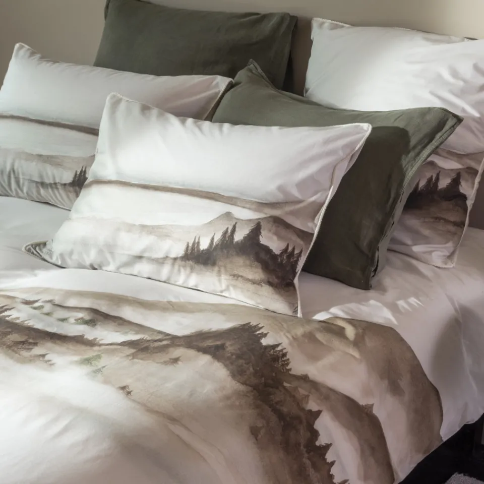 Embarquez dans un voyage imaginaire avec la taie d’oreiller Horizons. Son effet dégradé dans les teintes beiges et marrons crée un brouillard dans un paysage sublime où se mêlent réalité et fiction.