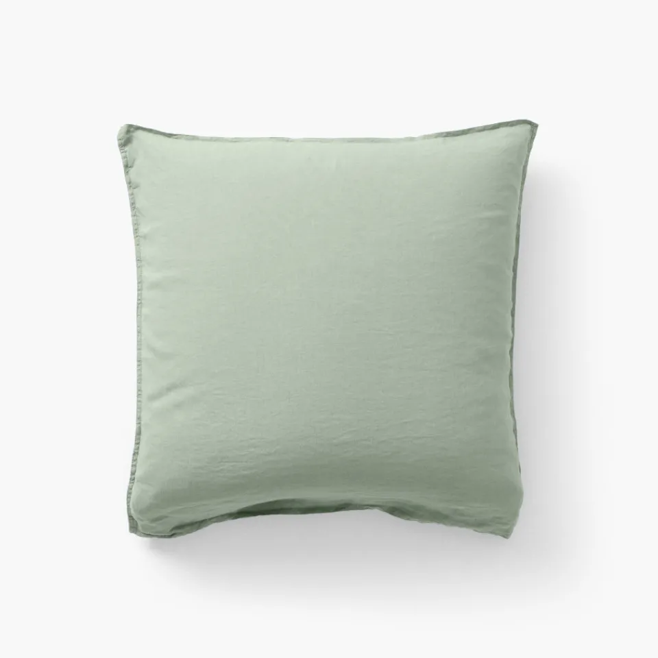 La taie d’oreiller Songe lin/coton a la particularité d’être bi-matière. Elle dispose d’une face en lin lavé des Flandres 165 g/m² très appréciée pour son aspect froissé et son pouvoir thermorégulateur, et d’une face en coton lavé 60 fils/cm² très aimée pour sa douceur au contact de la peau. Laissez-vous séduire par son coloris eucalyptus, à la fois frais et végétal.