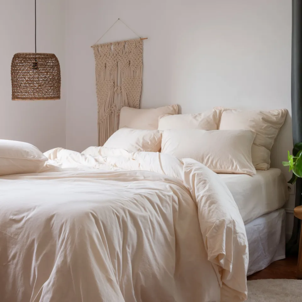 Carré Blanc Taie d’oreiller carrée pur coton lavé biologique Souffle vanille| Taies D’oreiller