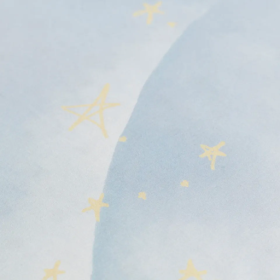 Cette taie d'oreiller enfant revêt des motifs de nuages étoilés pour un côté apaisant.