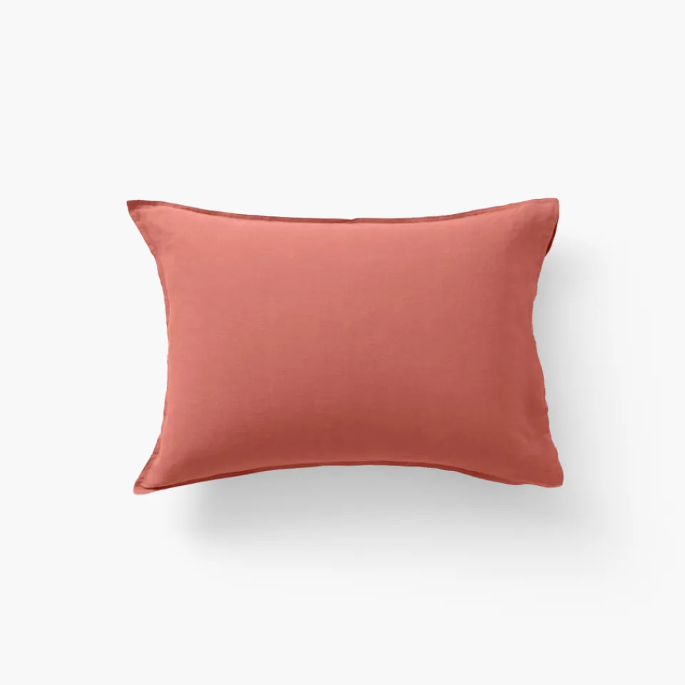 La taie d’oreiller Songe lin/coton a la particularité d’être bi-matière. Elle dispose d’une face en lin lavé des Flandres 165 g/m² très appréciée pour son aspect froissé et son pouvoir thermorégulateur, et d’une face en coton lavé 57 fils/cm² très aimée pour sa douceur au contact de la peau. Laissez-vous séduire par son coloris terre cuite tendance.