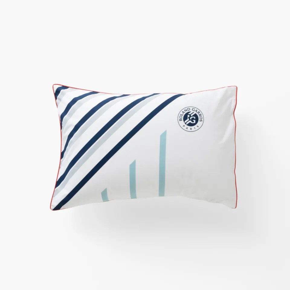 Vivez une expérience graphique aux couleurs du tournoi Roland-Garros avec la collection Tie Break. Confectionnée en percale de coton, cette taie d’oreiller réversible met en scène un jeu de lignes inspirées de l’architecture des couloirs du stade, arpentés par les plus grandes légendes du tennis. Affichant un logo Roland-Garros brodé, cette taie d’oreiller vous séduira également par son passepoil couleur terre battue.
