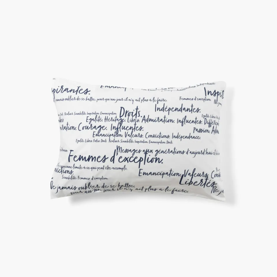 Rappelez-vous les droits des femmes, leur liberté et leurs combats à travers la collection Simones. Réversible, cette taie d’oreiller présente un magnifique dessin aquarellé d’un côté et des mots engagés de l’autre pour varier les styles de décoration. Découvrez les autres éléments de la parure de lit Simones qui met en lumière des personnages emblématiques et inoubliables. De quoi afficher fièrement votre féminisme !