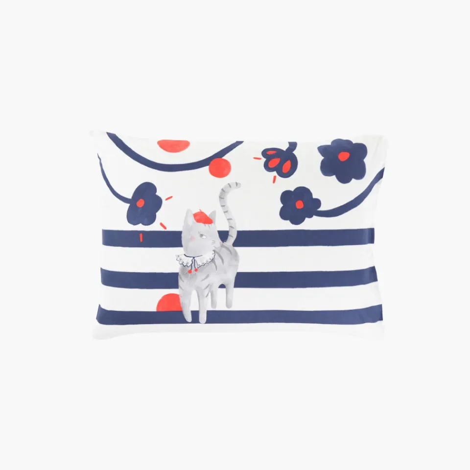 Carré Blanc Taie d’oreiller rectangulaire réversible coton biologique Ptitchic chat|Enfant Linge De Litbio|Taies D’oreiller