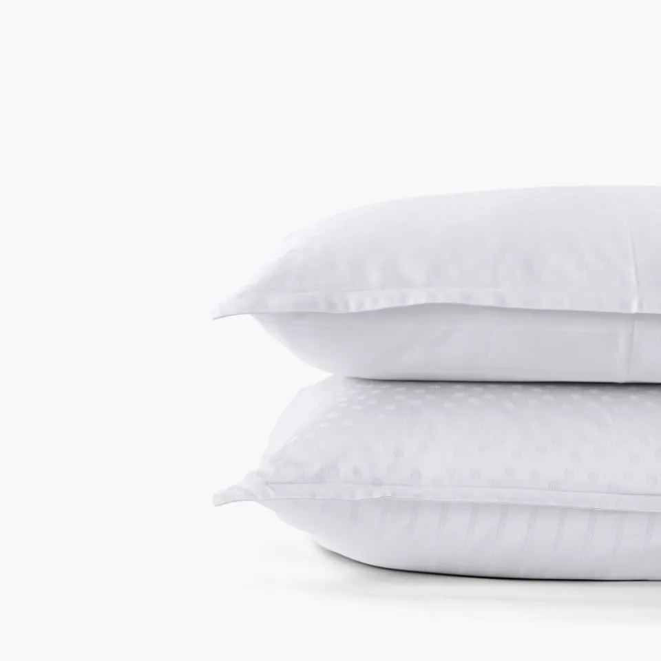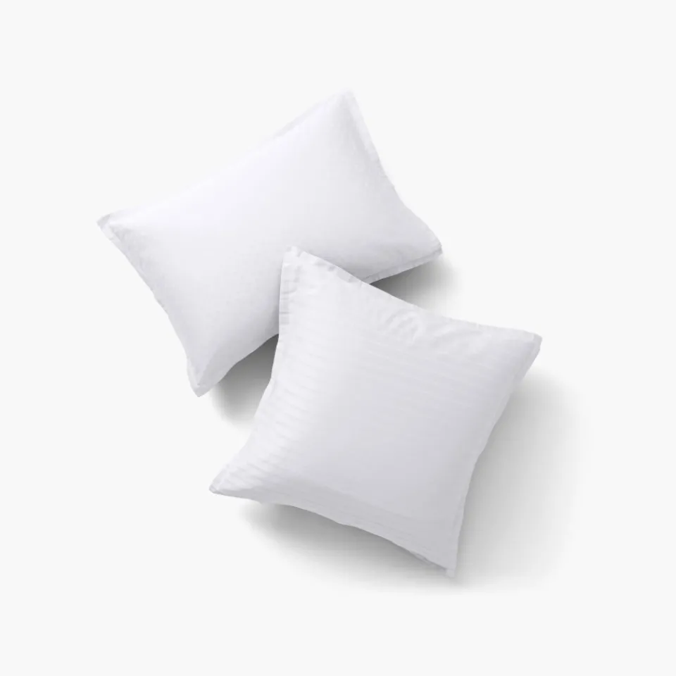 Carré Blanc Taie d’oreiller rectangulaire satin de coton jacquard pois et rayures Prestige blanc| Taies D’oreiller