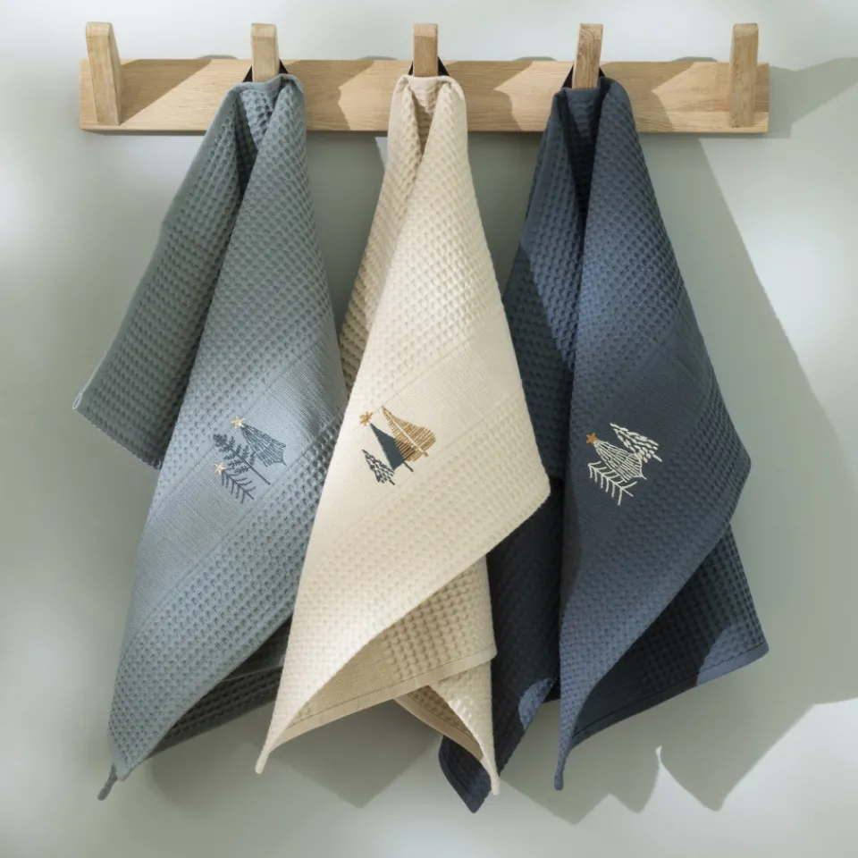 L’esprit de Noël s’invite dans votre cuisine avec le torchon en nid d’abeille Sous-Bois. Disponible en trois coloris : beige clair, kaki et anthracite, il vous accompagnera tout au long de cette période festive