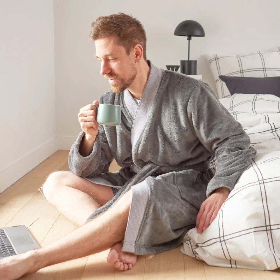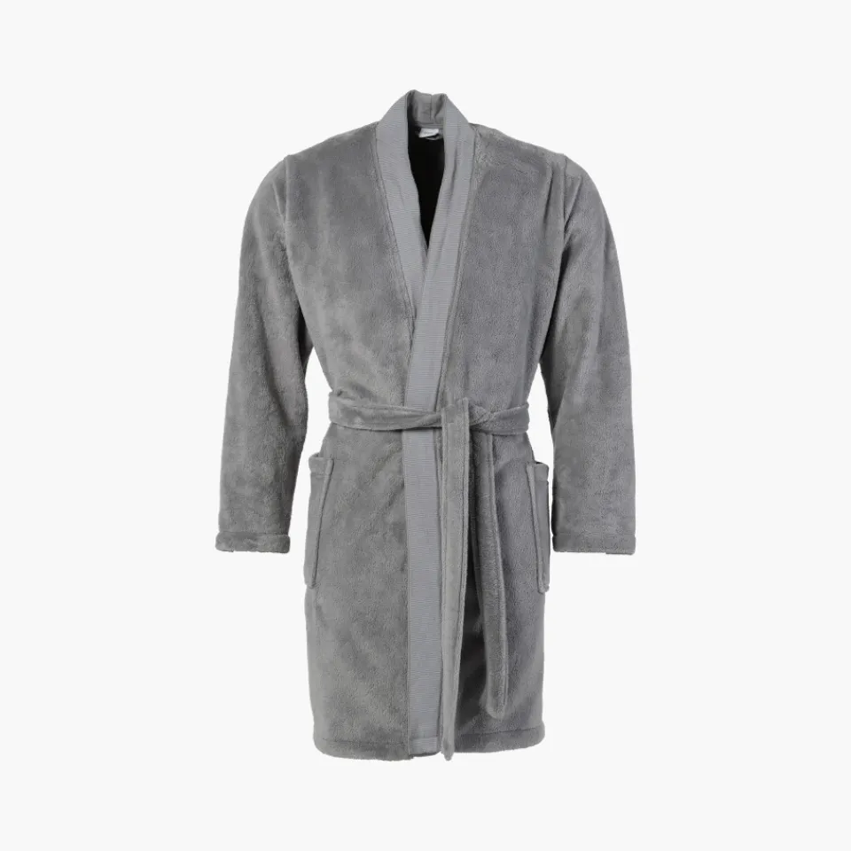 La robe de chambre pour homme Grizzli a été conçue en matière polaire, ce qui lui confère une très grande douceur au toucher. De coloris gris, ce vêtement homewear vous séduira grâce à son liteau jacquard ton sur ton qui voit naître de fines rayures graphiques. Elégante et moderne, cette veste d’intérieur est une idée cadeau qui saura faire plaisir à tous les hommes.