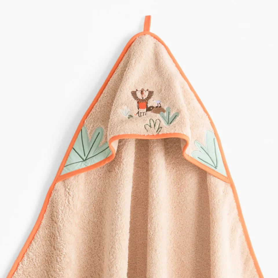 La cape de bain Safari est le choix parfait pour ceux qui cherchent à ajouter une touche exotique à la salle de bain des enfants. Cette collection arbore un motif brodé de petit lion sur fond de couleur beige et un liteau jacquard qui rappelle la savane. Fabriqué à partir de coton biologique, sain et confortable, ce linge de bain promet d’amuser les enfants au quotidien.