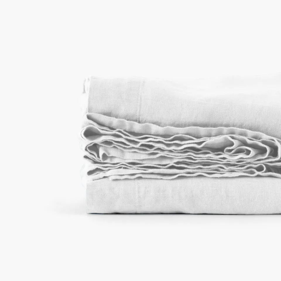 Le drap de lit uni Songe est en pur lin lavé des Flandres, 165 g/m². D’un naturel absorbant et aéré, le lin a pour atout de réguler le corps.