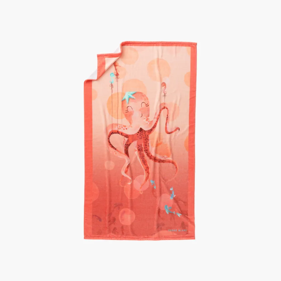Découvrez l’univers marin avec le drap de plage Nausica, arborant un motif aquarellé unique. Avec son charmant poulpe et ses hippocampes ludiques, il constitue un cadeau enchanteur.
