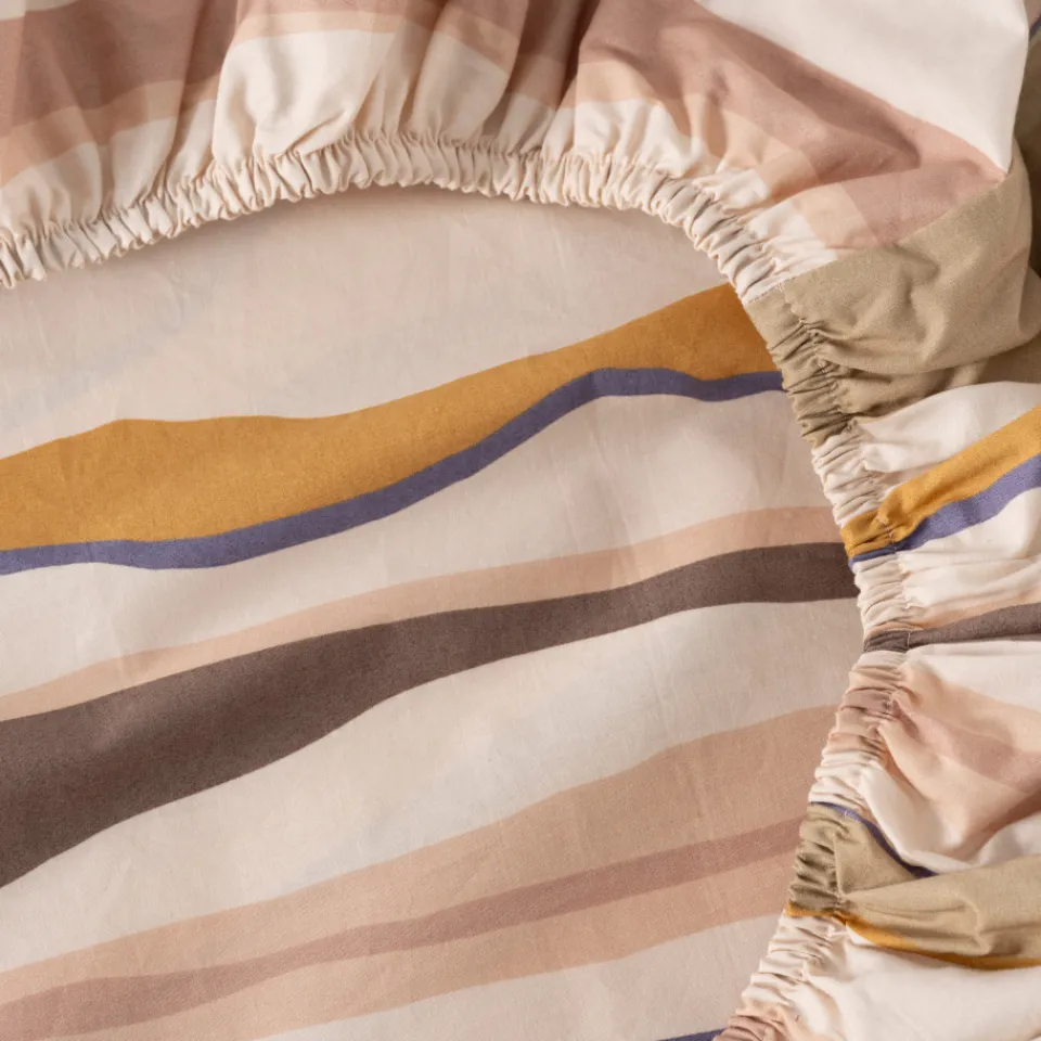 Découvrez les différentes strates de la terre représentées sur le drap housse Sonora, formant une superbe rayure stylisée et graphique.
