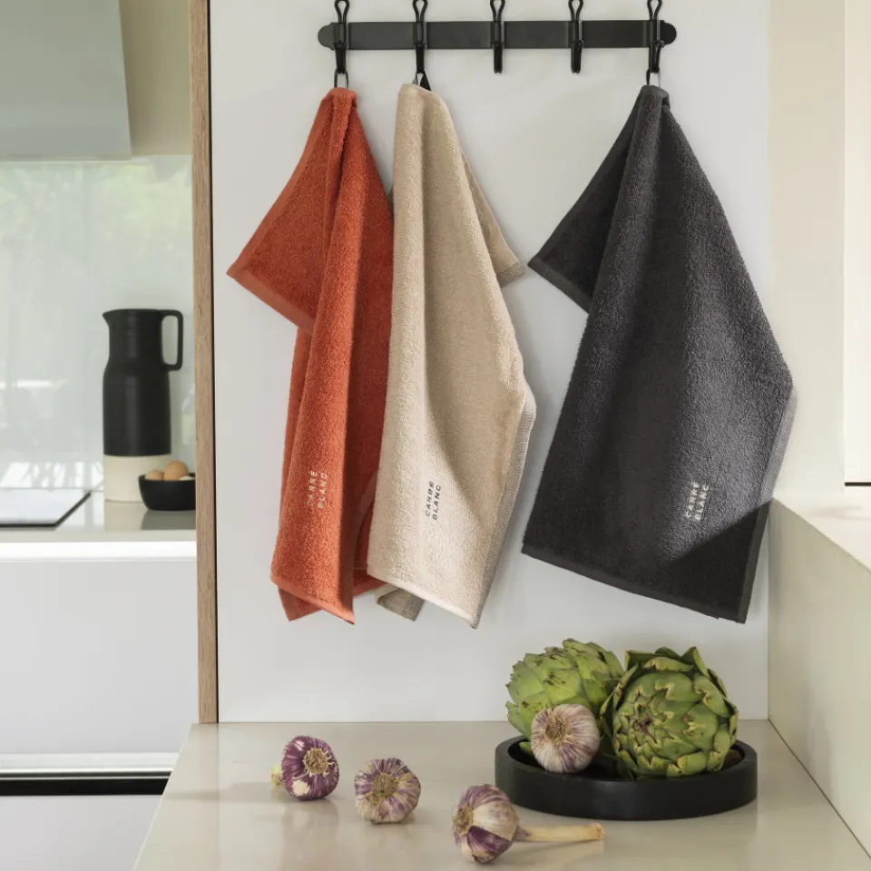 Craquez pour l’essuie-mains Signature brodé, un incontournable dans votre routine. Idéal pour la cuisine, il est disponible en trois coloris intemporels : grège, charbon et terre cuite, pour parfaire votre intérieur.