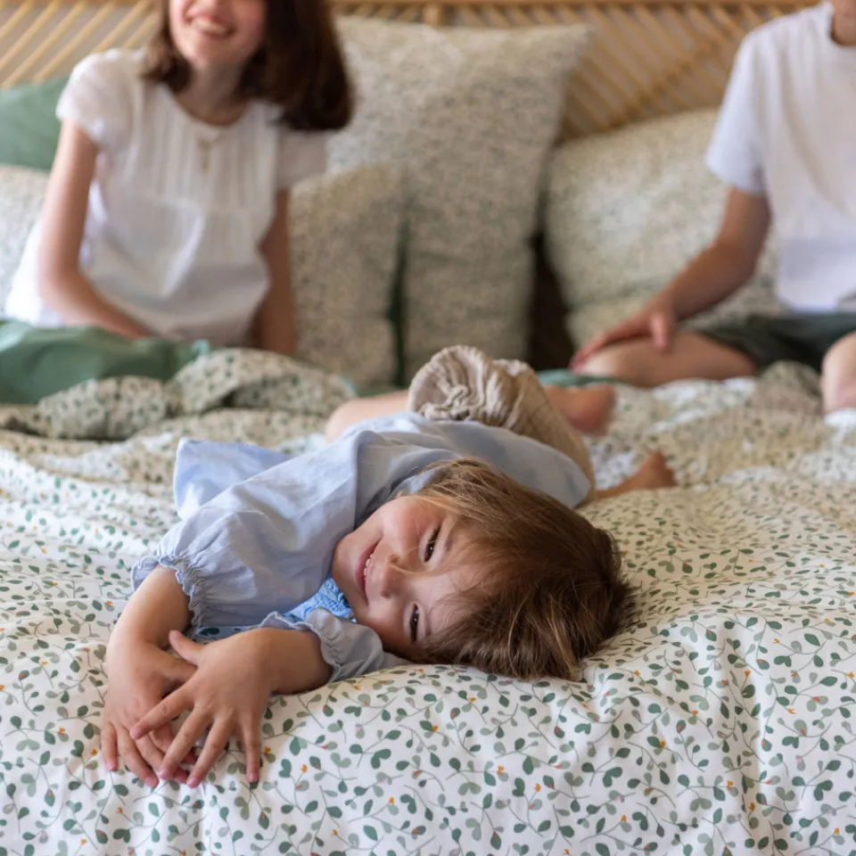Faites entrer la nature dans votre intérieur avec notre collection Néo et son coloris thym végétal. Le confort de la percale de coton associé à de petits imprimés pour une chambre tendance.
