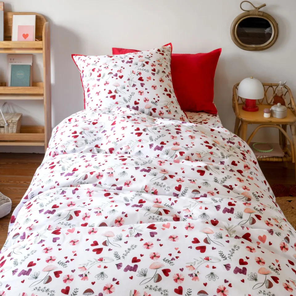 Confectionnée en coton biologique, cette housse de couette pour enfant allie composition responsable et motifs adorables. Faites plaisir à toutes les petites princesses avec cette parure aux effets aquarellés ou dessinés.
