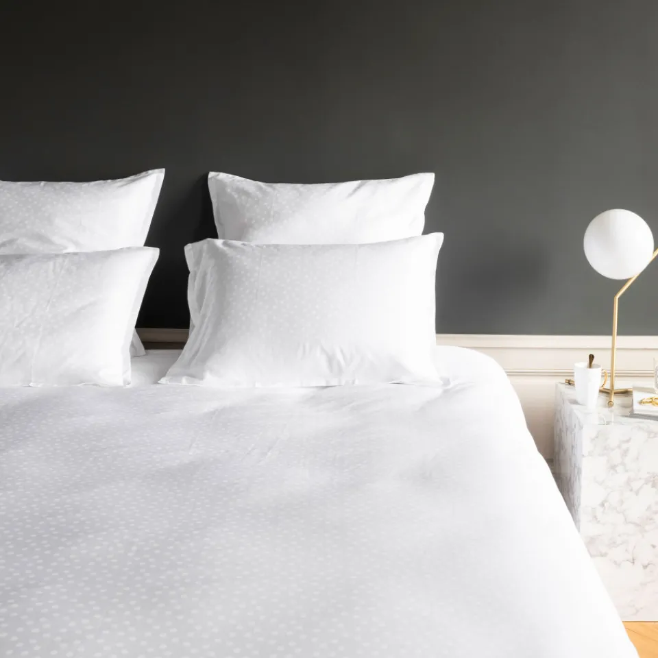 Carré Blanc Housse de couette satin de coton jacquard pois et rayures Prestige blanc| Housses De Couette
