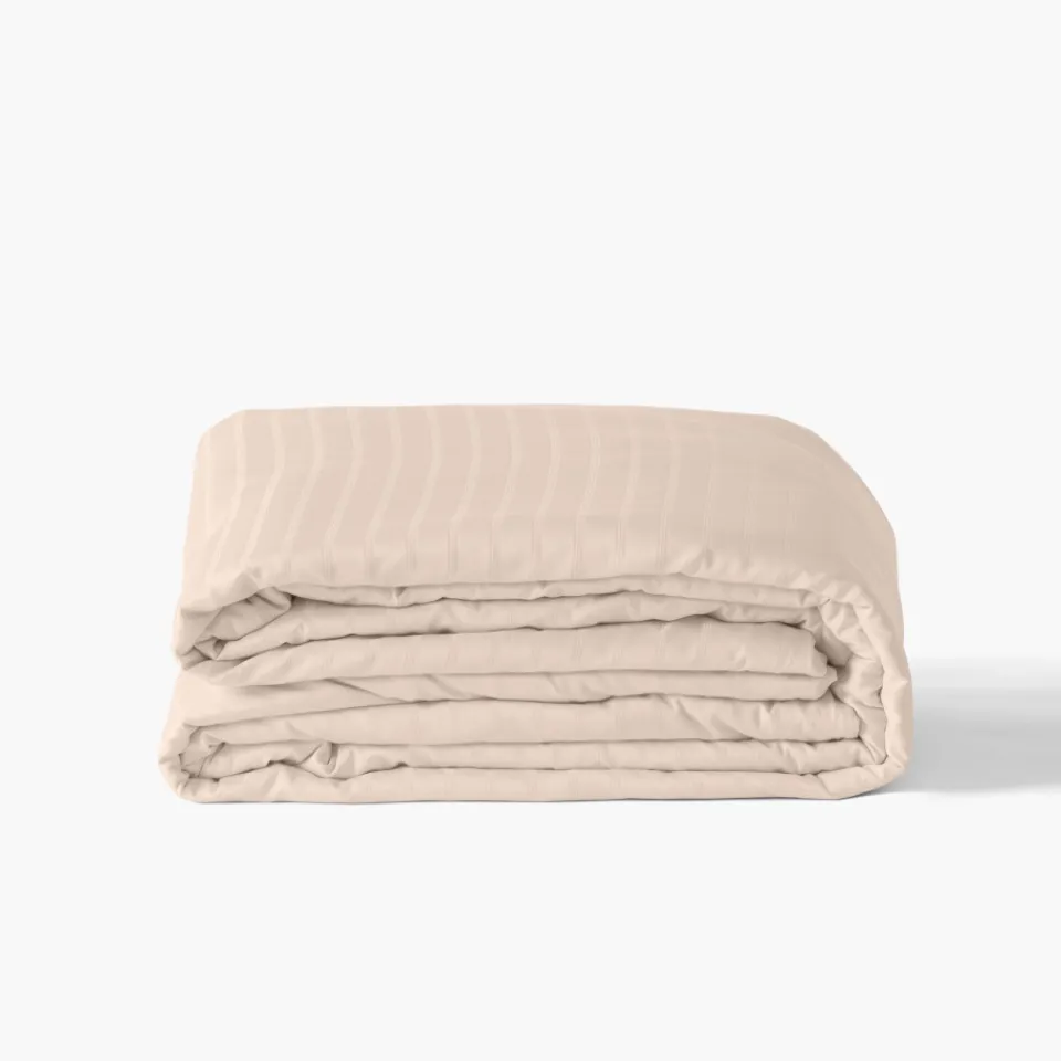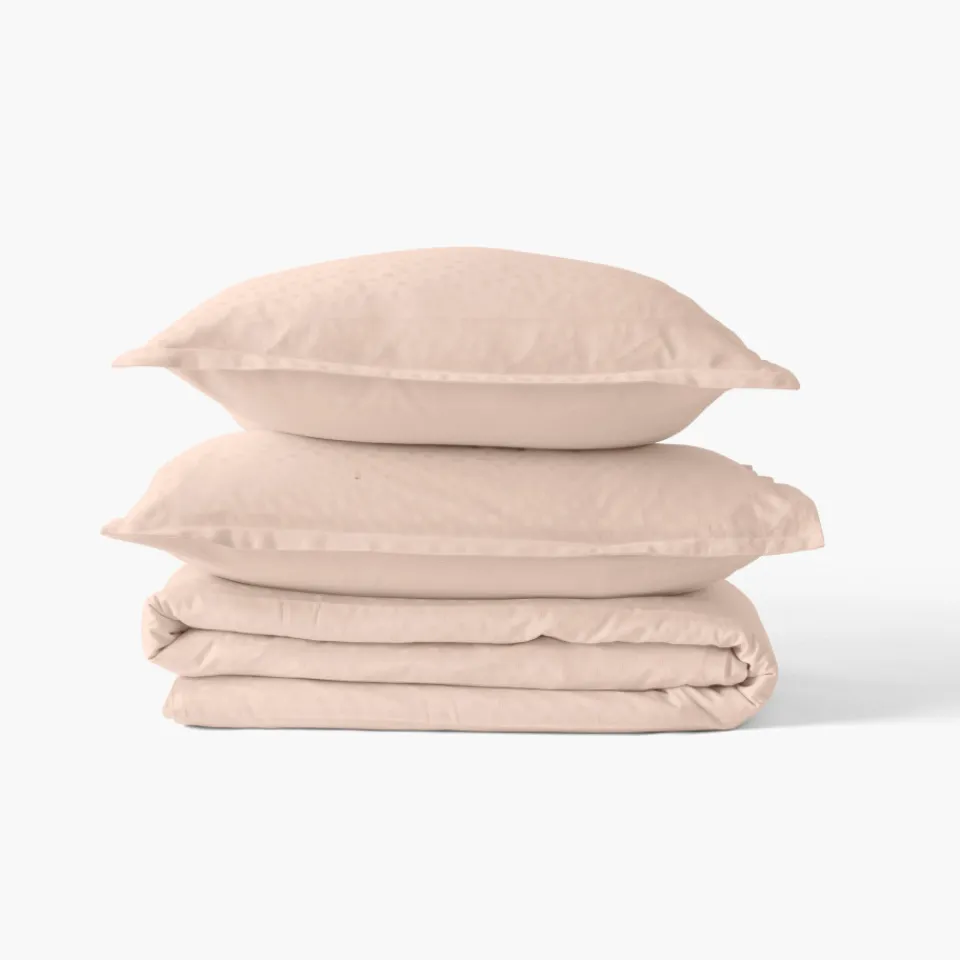 Carré Blanc Housse de couette satin de coton jacquard pois et rayures Prestige nacre| Housses De Couette