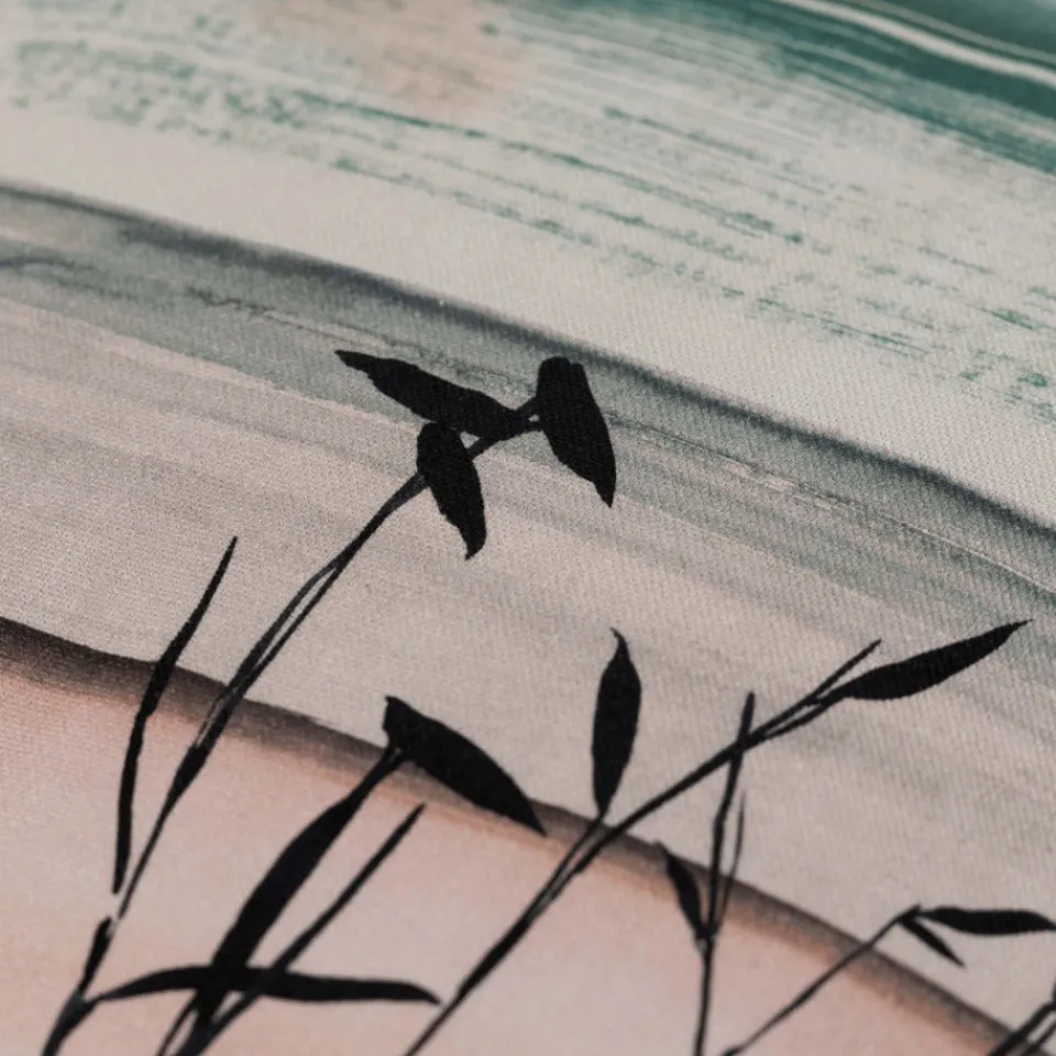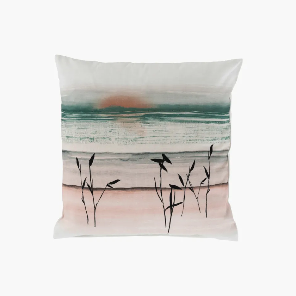 Cette housse de coussin arbore des coloris doux et apaisants pour habiller votre déco.