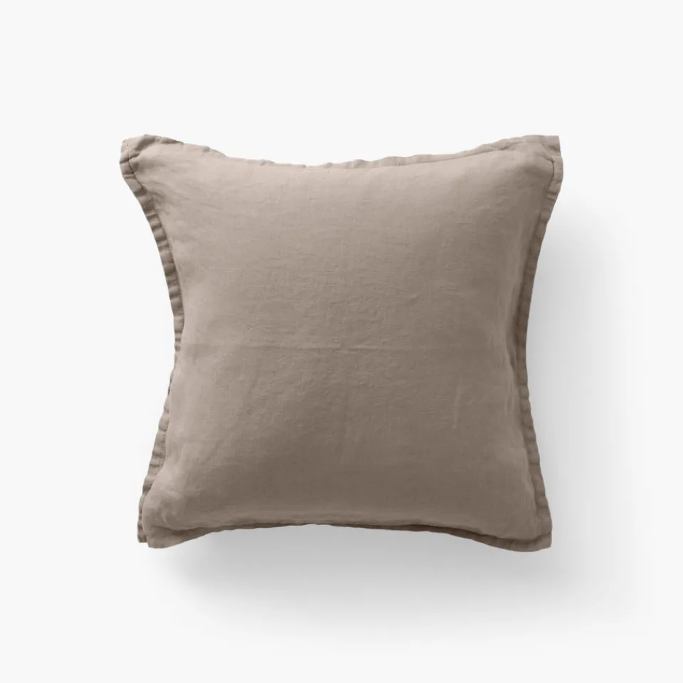 Carré Blanc Housse de coussin lin lavé Songe taupe| Housses De Coussin