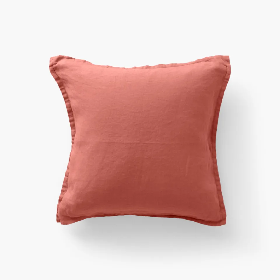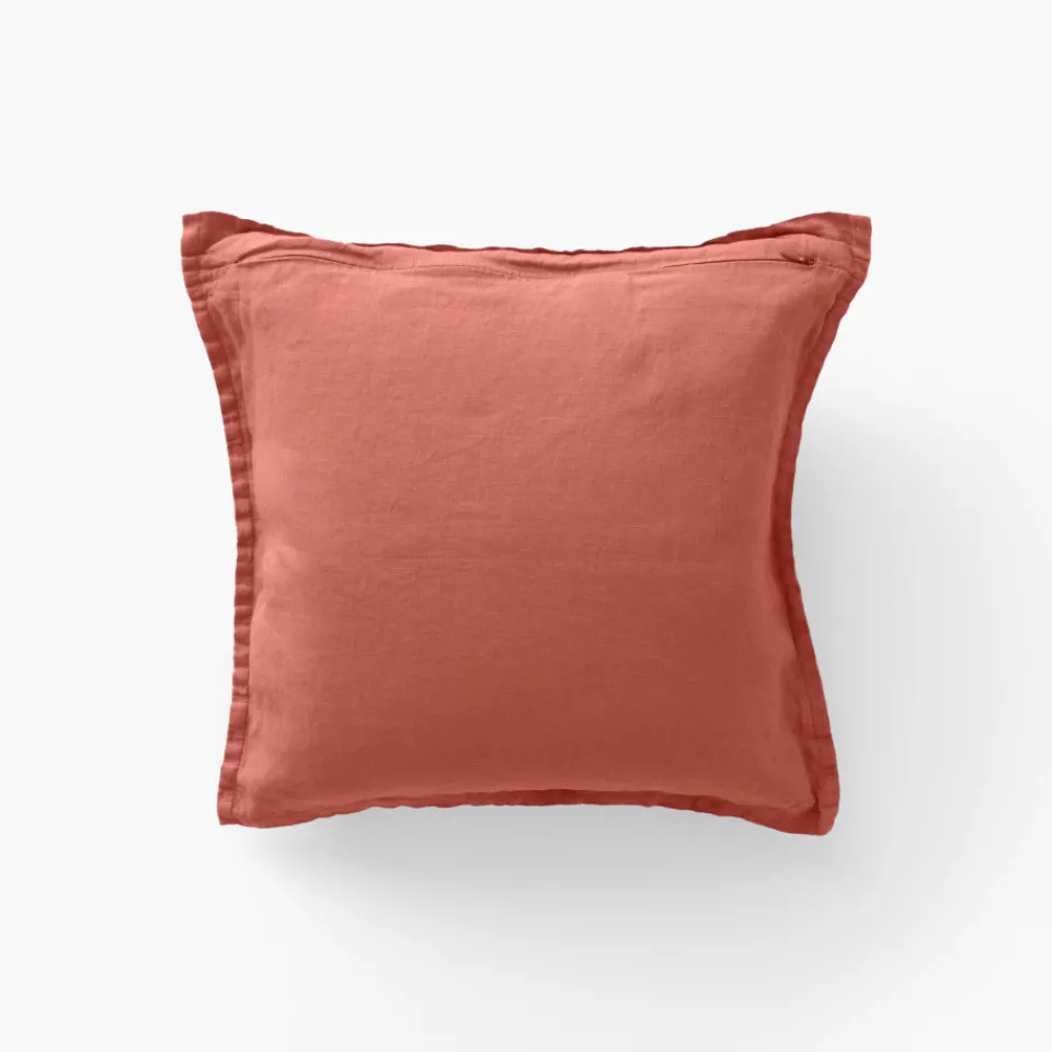 Carré Blanc Housse de coussin lin lavé Songe terre cuite| Housses De Coussin