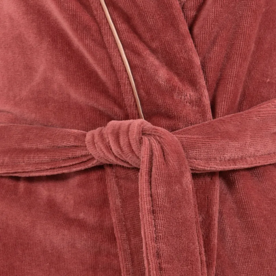 Profitez de doux moments d’évasion avec le peignoir femme Calathéa et son style exotique-chic. Confectionné en velours de coton moelleux, cet accessoire vous séduira par sa douceur et son confort. Elégant et tendance, il revêt une jolie broderie végétale sur la poitrine et un passepoil en satin beige doré le long de l’encolure, le tout dans un coloris terracotta.
