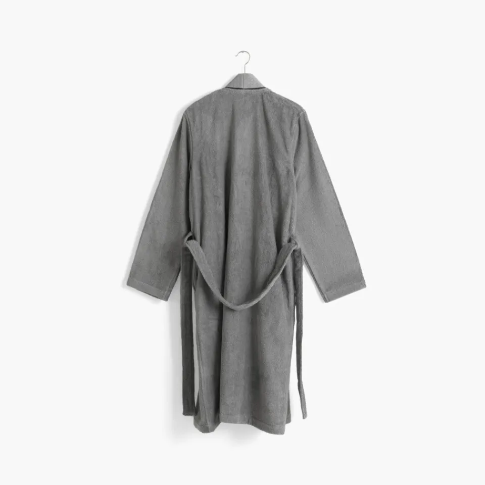 Confectionné en bouclette de coton, le peignoir de bain Equinoxe revêt un coloris gris étain et un col kimono moderne. Laissez-vous séduire par ses finitions subtiles le long du col.
