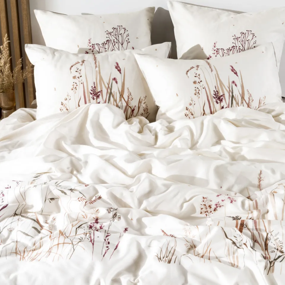 Faites entrer la nature sauvage dans votre chambre avec la taie d’oreiller Aura. Ses deux décors vous permettent de laisser parler votre créativité : optez pour les motifs de prairie et d’herbes hautes ou pour son décor uni taupe.