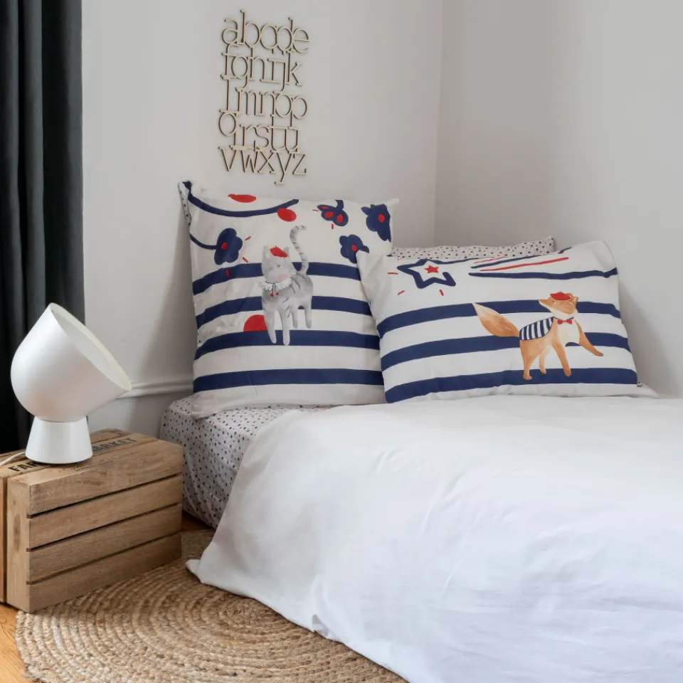Craquez pour la collection Ptitchic et son nouveau concept proche de la personnalisation. Grâce à cette taie d’oreiller réversible, les enfants ont la possibilité d’obtenir des parures différentes et de les personnaliser au gré de leurs envies. Imprimé renard ou étoiles : libre à chacun de composer sa propre parure de lit avec Carré Blanc. Du sur-mesure pour les petits !