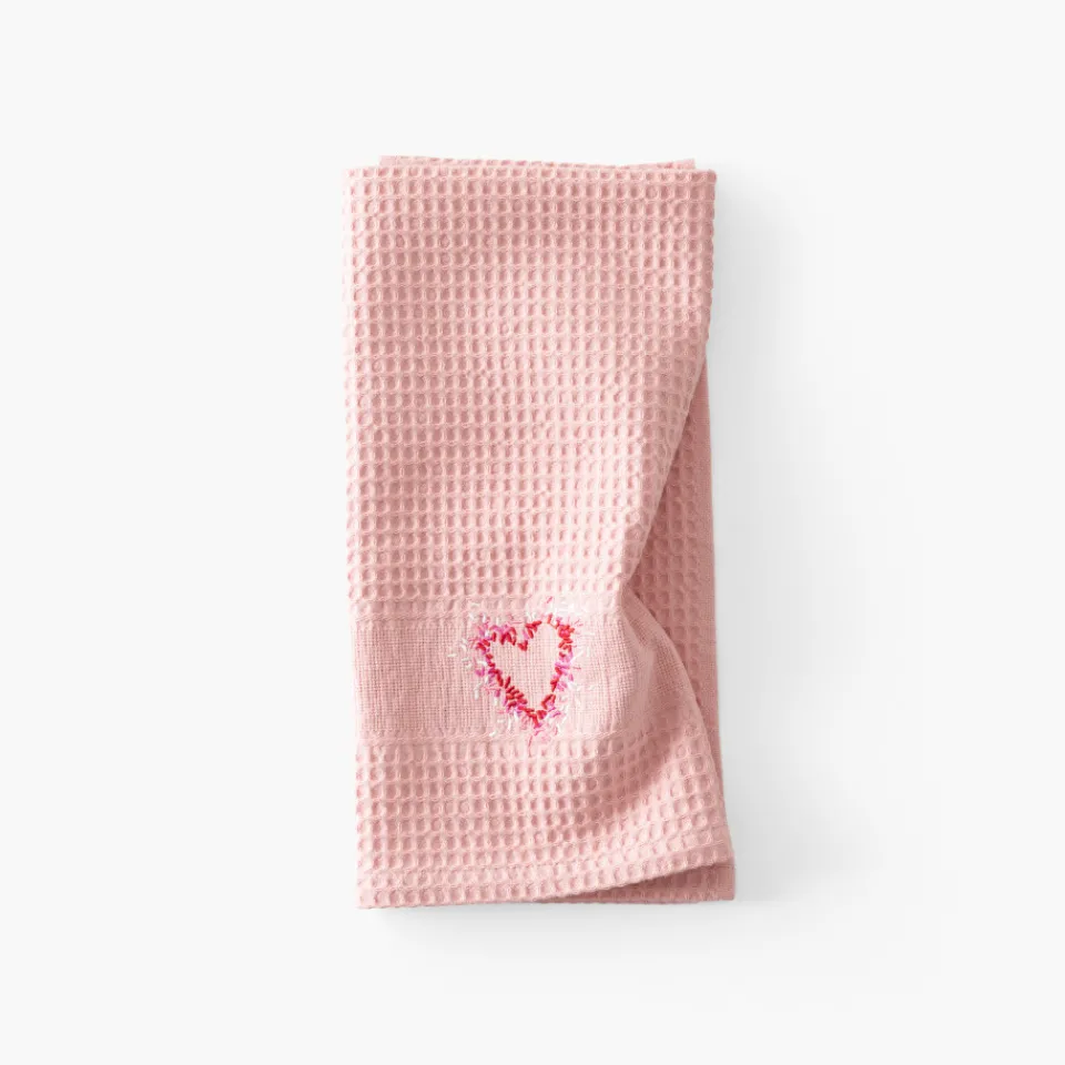 Donnez de l’amour avec le torchon Aimé au motif cœur, parfait pour un cadeau. Tissé en nid d’abeille, il offre une excellente absorption et sèche rapidement, alliant fonctionnalité et élégance. Il est disponible en rouge et nude.